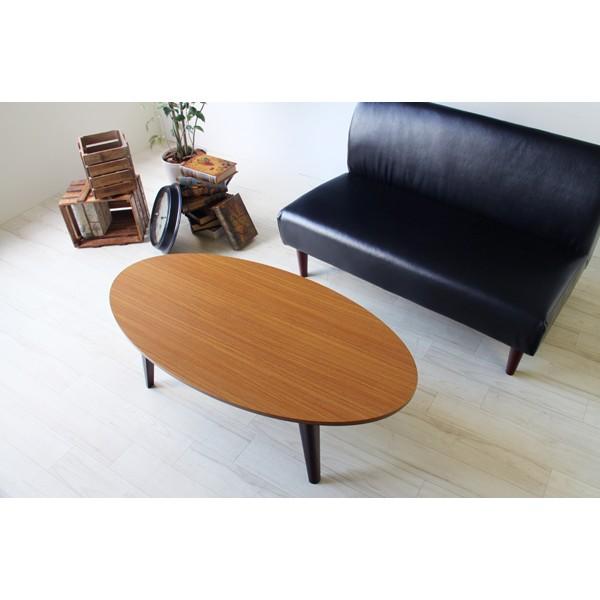 珍しい丸型(オーバル)の北欧風ローテーブル。外からは見えにくい薄型ヒーターがついていて、冬はコタツとしても使えます。