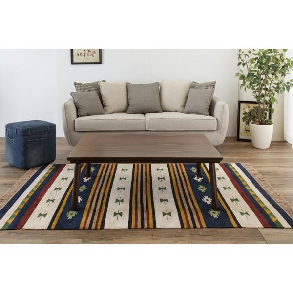 フローロングの床にラグをひいて、その上にコタツをローテーブルとして置いていますが、和風のインテリアにならずに使えています。